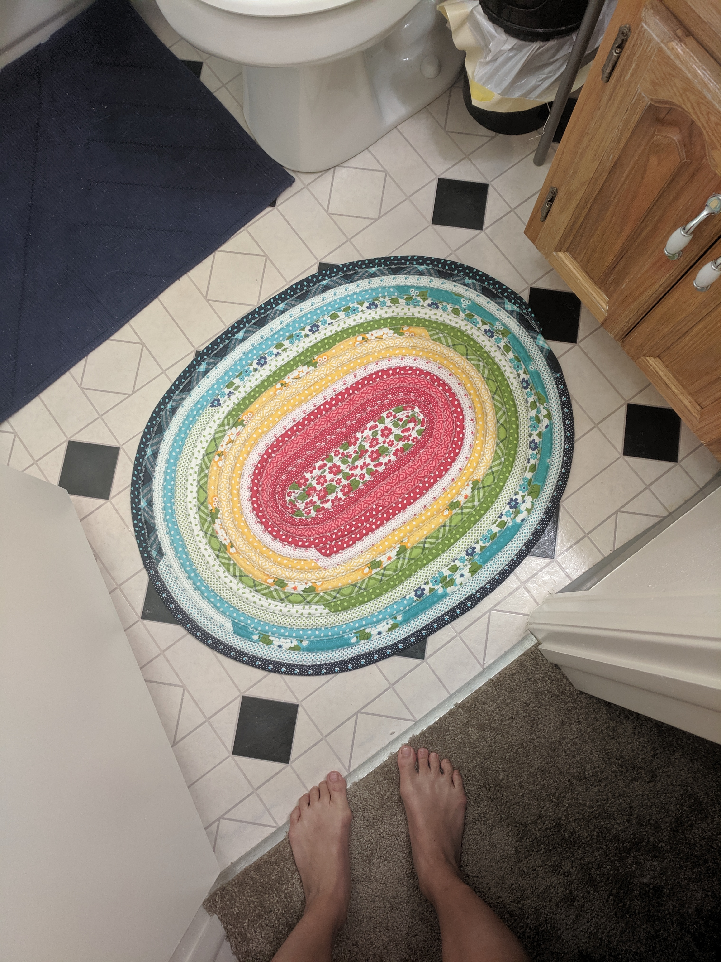 But then it turned out wonderfully crinkly and soft, and nothing bad happened 🙂 Washing your quilt helps the batting fluff up a bit, and the quilting sinks down, making a nice texture that hides mistakes (of which I made many) and bumps (of which there are many) and pretty much everything else. Plus it makes the whole thing soft and cuddly, which is what quilts are (for me) meant to be. I don’t think you’d wash an art quilt, or something with super detailed free motion, but for my purposes, I learned to stop worrying about the tiny things because I can’t even find them anymore when I look at the quilt. And as Angela Walters says, “better finished than perfect”.