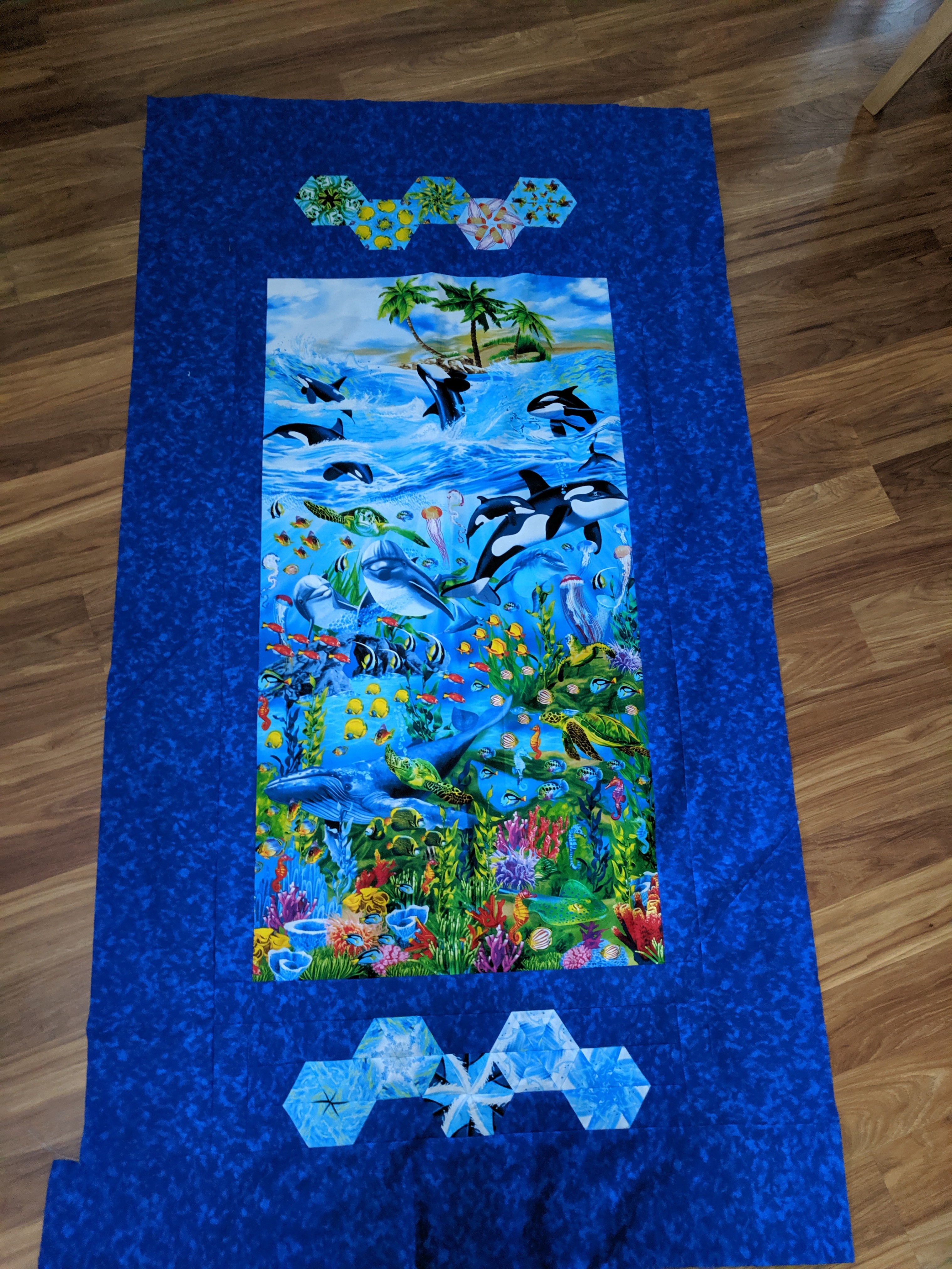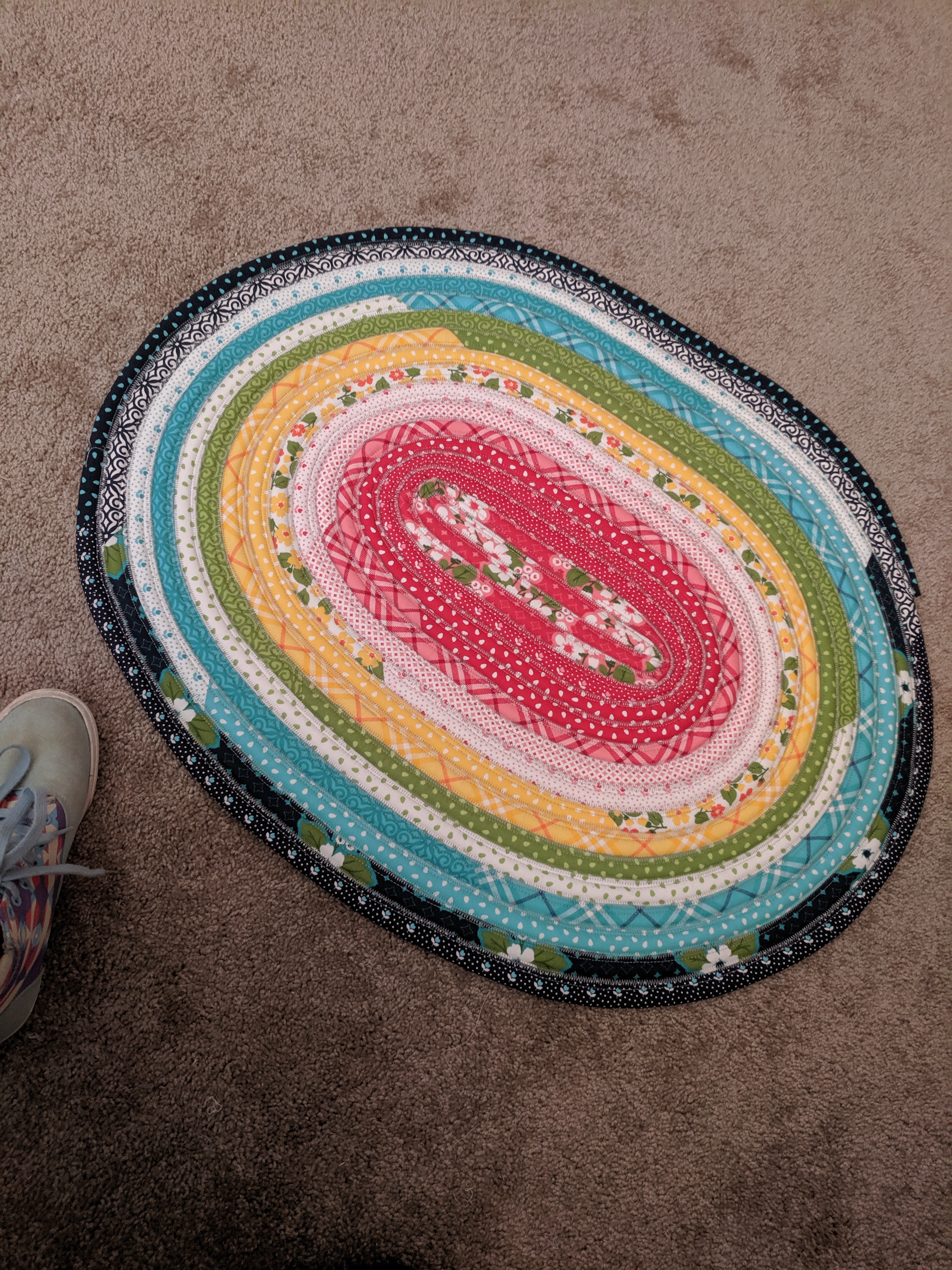 It took a bit, but I quilted this in a couple nights and put the binding on (strip of fabric wrapped around the edges of the fabric).