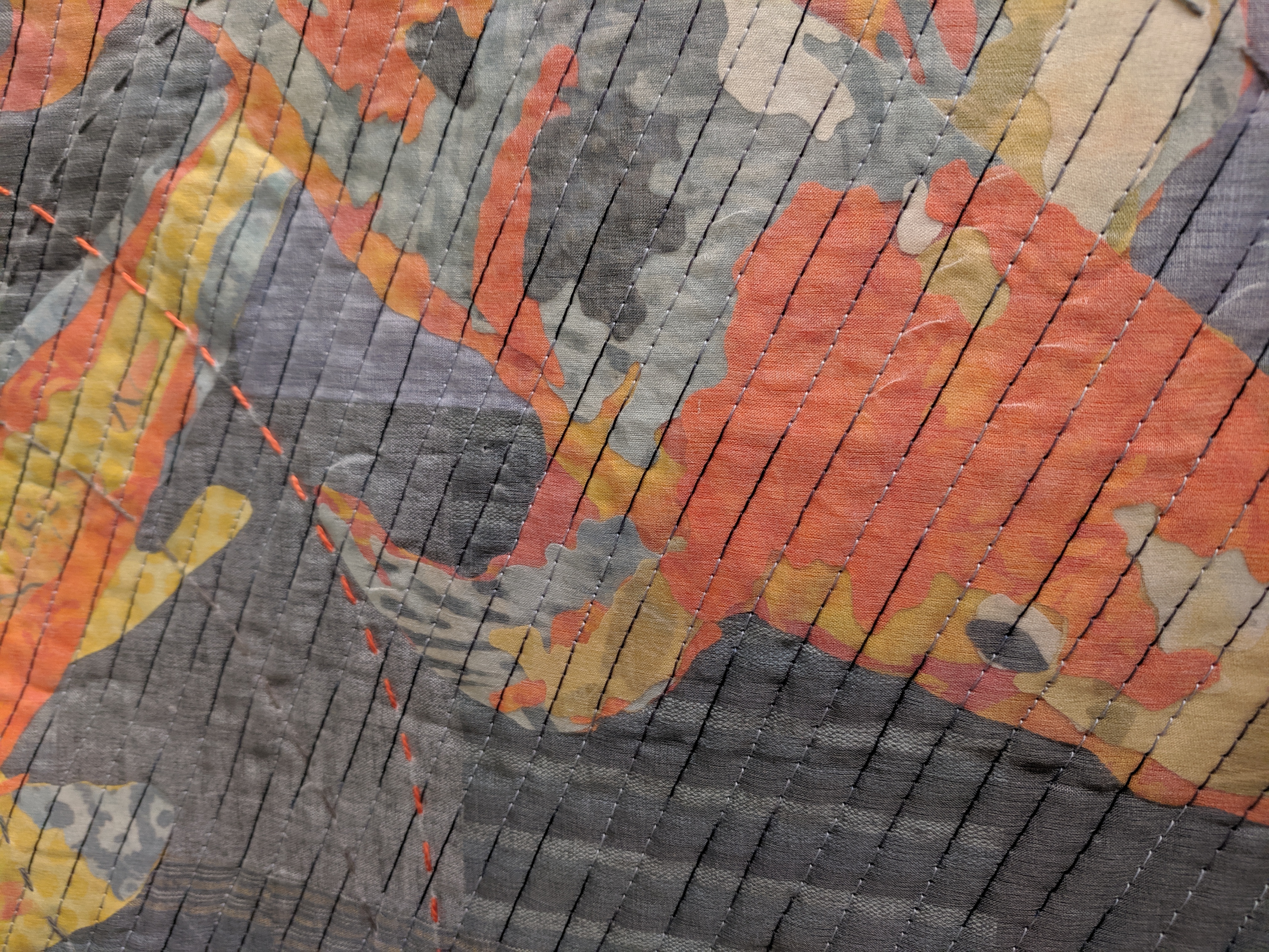 - Design: hand sewing a running stitch to make lines or a design across the quilt top.