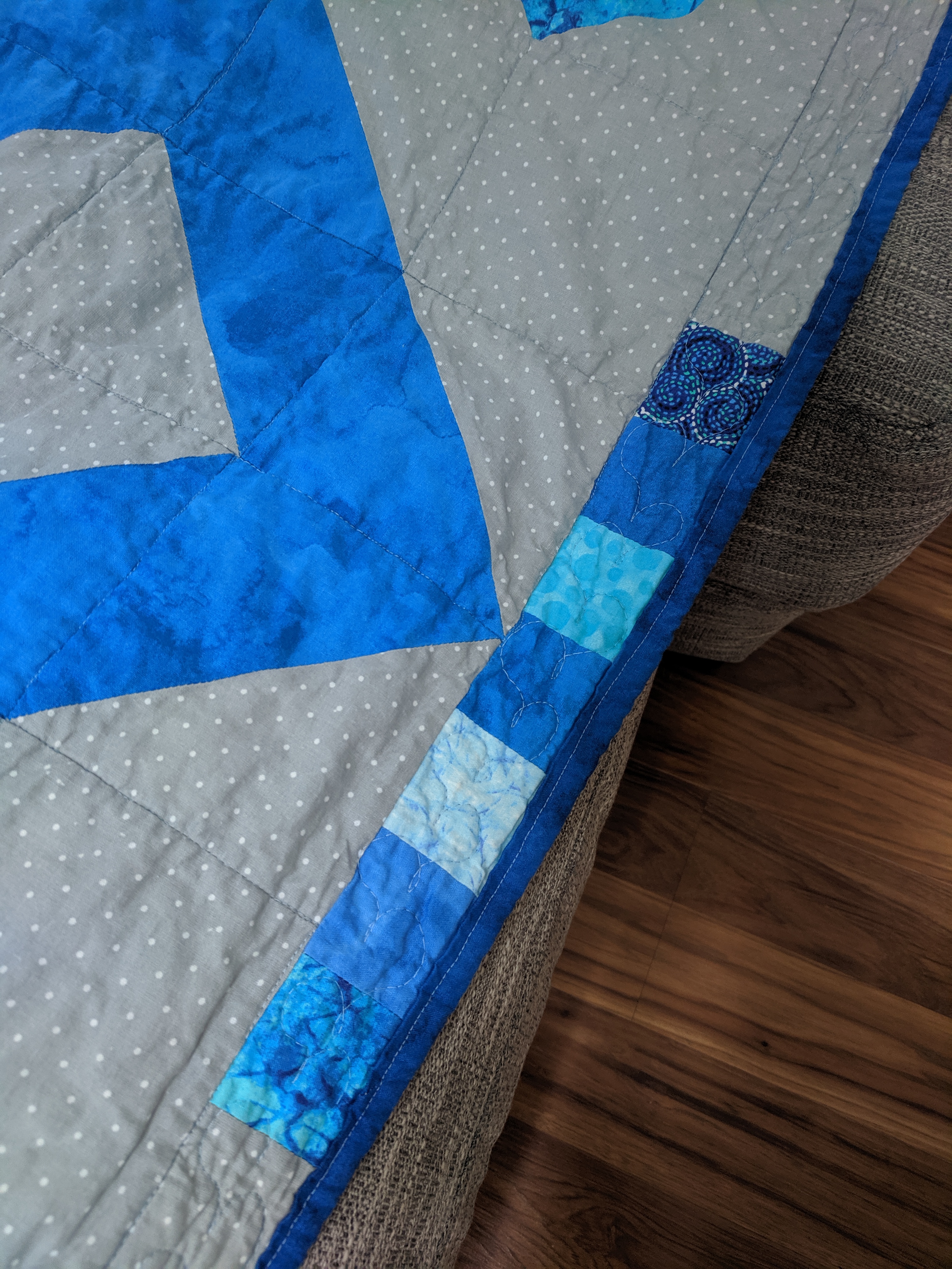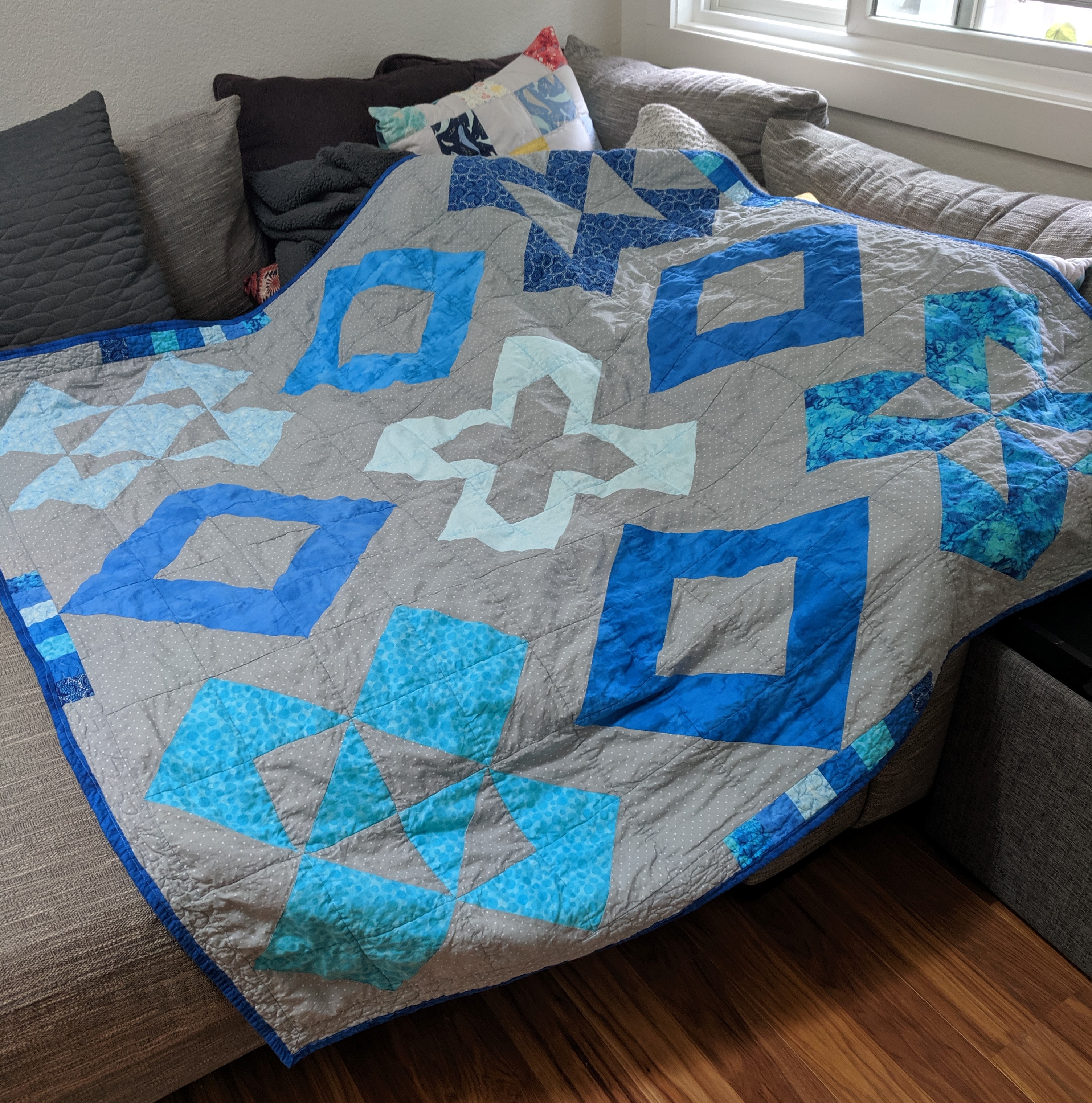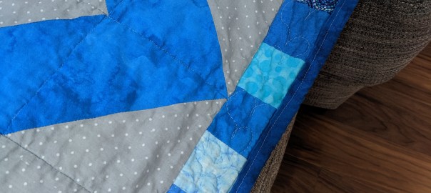 I made this quilt for my wonderful coworker whose wife had a baby 🙂 It is self drafted out of (primarily) HSTs. I based the pattern off “hugs and kisses XOXO” and used a fat quarter bundle from Joann. It ended up ~60″x60″, which is a bit large for a baby quilt but I don’t care.