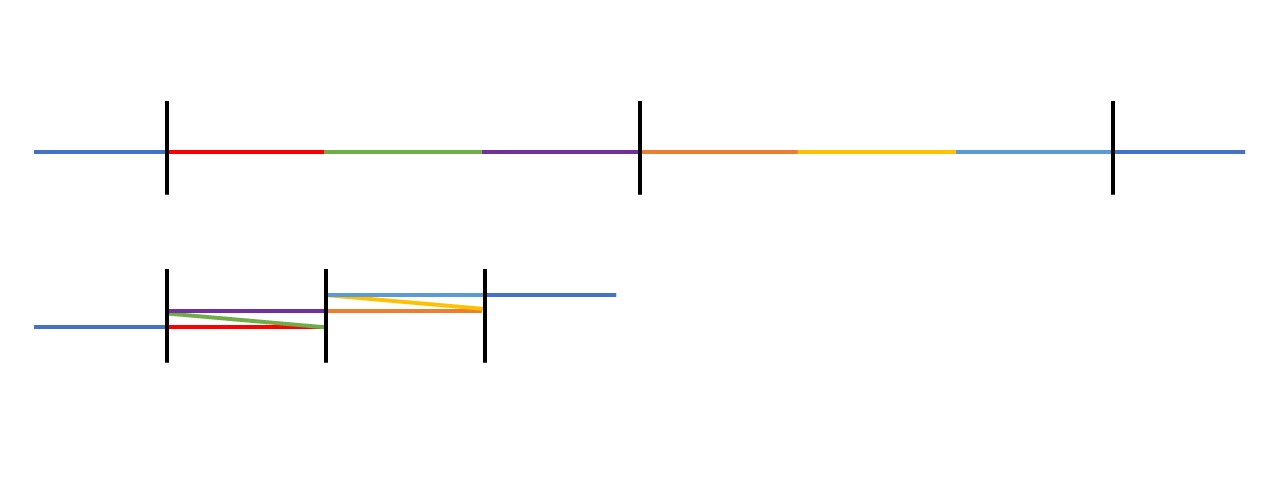 A hopefully effective way to explain pleats – the red-green-purple section turns out to be the length of just the red section aka 1/3 the length