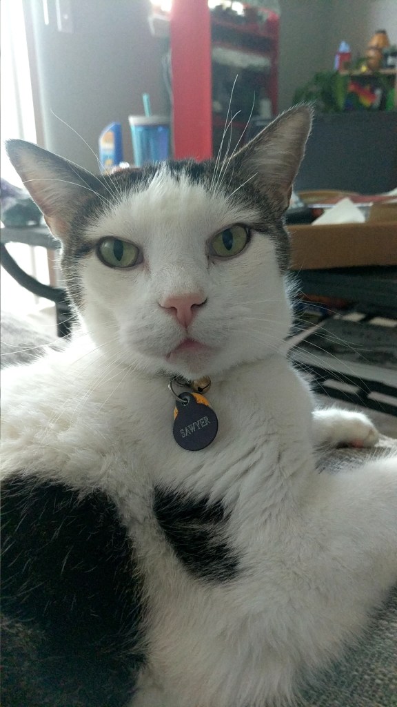 Since it was made off a picture-perfect sketch, the true emotion of his Judgement really comes through, which is a true joy. He looks at me with this face all the time and I’m really glad I captured it in painting form.