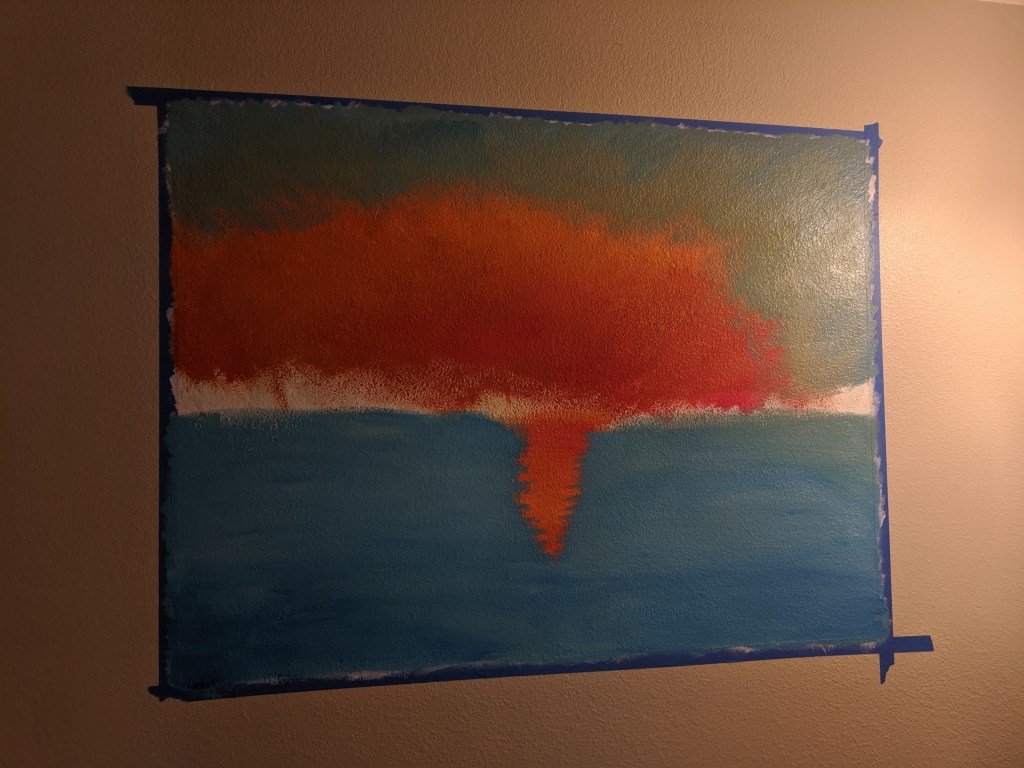 I watched a bunch of Bob Ross tutorials before embarking on this painting, and I knew I wanted a mountain and sunset scene.