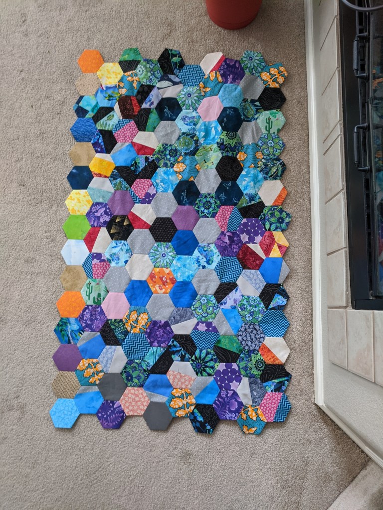I’m really enjoying this project. And it’s becoming large enough to serve as a quilt while I work on it!