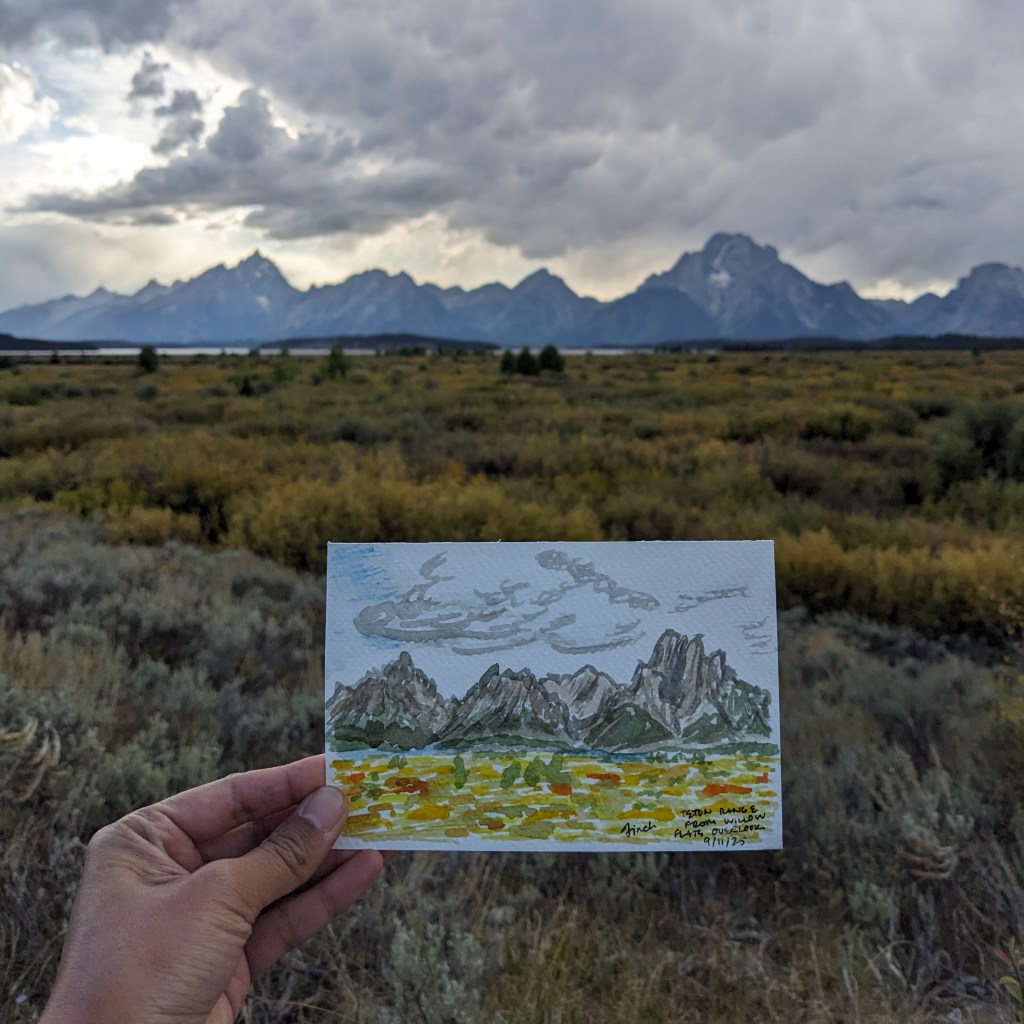 I jumped at the chance to go to the Grand Tetons again with family and did some fun watercolor: