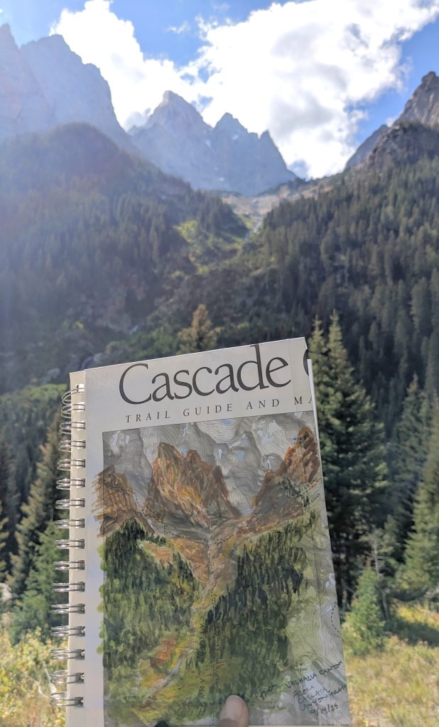 I attended a landscape watercolor class at my local art museum, which was SUPER helpful and taught me a lot of new techniques. I think one of my main takeaways is that planning a piece *does* help, and makes sure you’re capturing the things you find important. This includes planning the contrasts, and where your dark and light colors will be. I have been mainly preoccupied with shadows, but have ignored the contrast between back/mid/foreground, which helps guide the eye across the work as a whole. As I looked back through my field book, I found that I tend to ignore the mid and foregrounds, opting to simply look into the distance and draw the mountains I see. But… adding context adds depth and interest to the piece, so I’m now looking with new considerations in mind 🙂